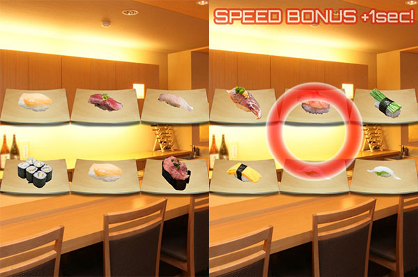 - よく見ると同じ種類の寿司があるので、それを見つける脳トレゲームです