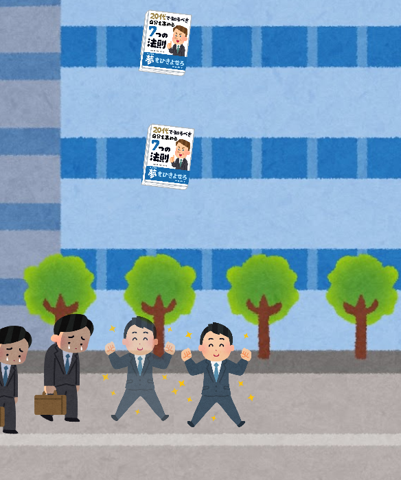・トボトボ歩いている疲れたリーマンに自己啓発本を命中させるとスコアになります。