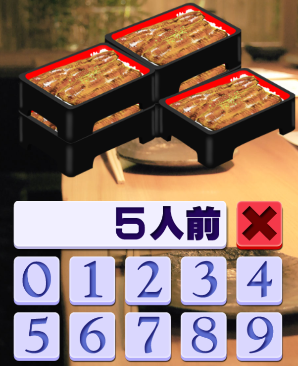 ・全部でうな重が何個あるか数えて入力し、回答します。